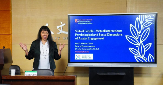 在讲座中,Makana Chock教授结合虚拟偶像运营、在线教育应用等案例,生动阐释了媒体与虚拟形象互动中的心理机制与文化差异。姜华教授则从社交媒体与人工智能等前沿视角展开深入分析。两位教授的分享视角新颖、富有启发性,现场师生反响热烈,互动环节讨论深入。